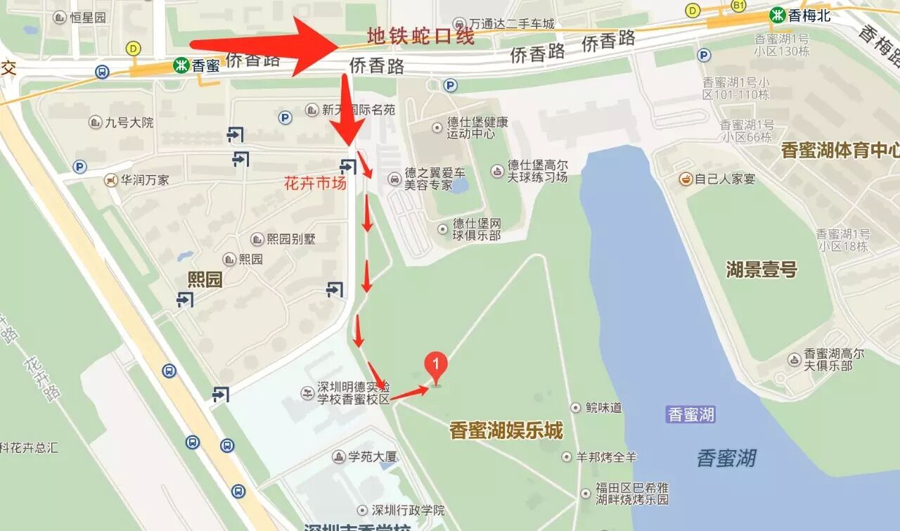 1. 地铁:二号线(蛇口线)到香蜜站下车,并按指示进入。