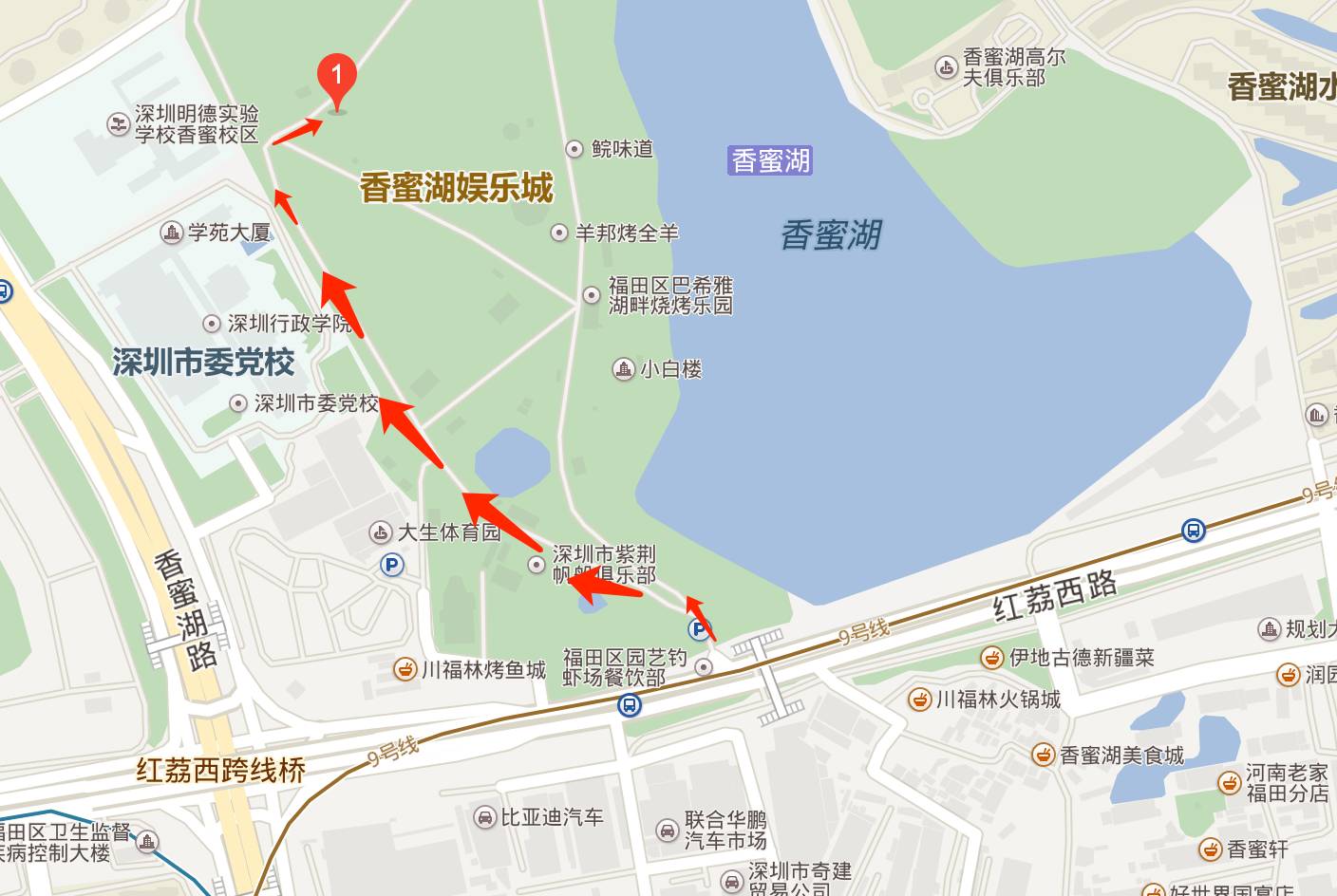 请直接导航“香蜜湖群众体育公园”,从红荔西路进入。